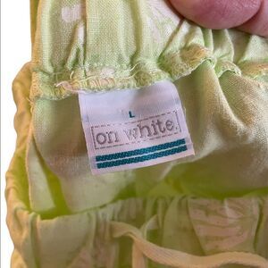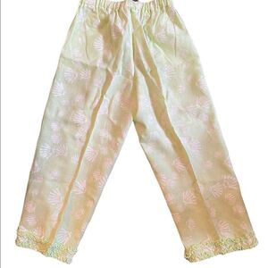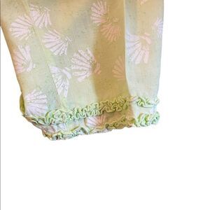 On White ruffled lime green top and elastic waist pants 100% cotton