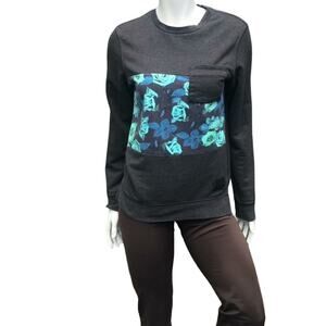 On the Byas Floral Sweatshirt with Pocket Gray Green Women's Size Small