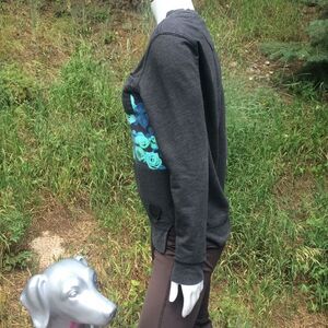 On the Byas Floral Sweatshirt with Pocket. Fabric has some wear/pilling (shown). Measurements: bust: 18, length: 26