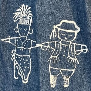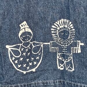 On the Rocks California Dress 14W Blue Denim Maxi Hand Painted Retro 80s Western