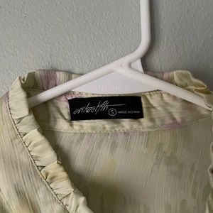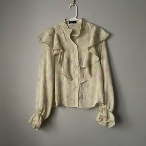 OnTwelfth Women's Yellow Button Down Blouse with Front and Back Ruffle S