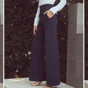Take your personal style to new heights with this wide-legged winner. Retro yet modern, this pair is made from smooth premium fabric that drapes to create an elongated silhouette. The material is breathable, wrinkle-free and slimming. Pair with a tank and blazer for an office ready ensemble or a sleek bodysuit and heels for a night out.