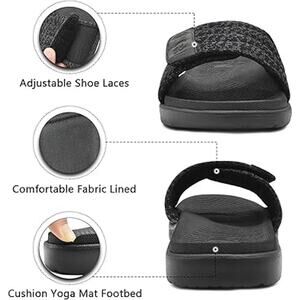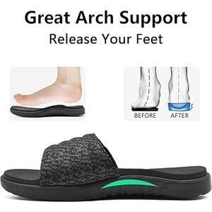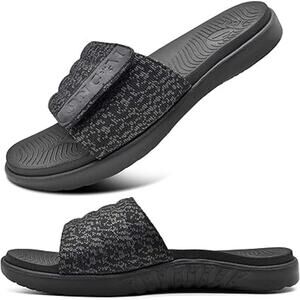 Oncai Mens 11 Black Gray Hook Loop Adjustable Strap Cushioned Slide On Sandals