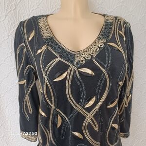 Once 1 Again Elegant Black and Gold Embroidered Women's Top Women Size XL
