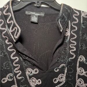 Once Again Woman’s Ribbon Embroidered Sparkle Tunic Size Medium Black Mandarin