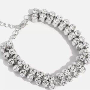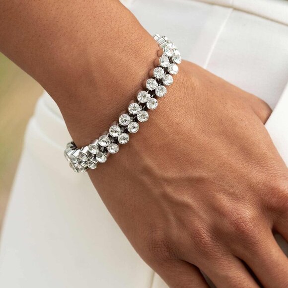 Set in round silver fittings, two rows of highly faceted white gems shimmer and shine along the wrist for a royal-worthy design. Features an adjustable clasp closure.