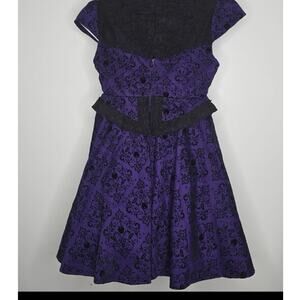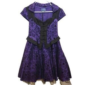 Once Upon a Time Hot Topic Exclusive Regina Purple and Black Witchy Whimsigoth Apple Damask Pattern Lace Tulle Knee Length Villain DressBlack Witchy Whimsigoth Apple Damask Pattern Lace Tulle Knee Length Villain Dress