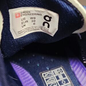 Oncloud worn on top collar. Size is Women 8 in dark blue color