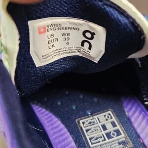 Oncloud worn on top collar. Size is Women 8 in dark blue color