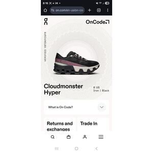 Oncloud for Women 8 in black color. Little worn on front near toe.