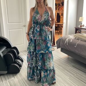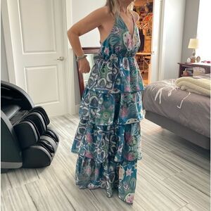 Onda De Mar Tiered Printed Sleeveless Maxi Dress.Size L