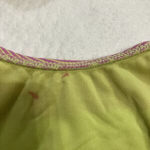 There is a small red mark on the inner lining, but it does not show on the outside of the bathing suit.