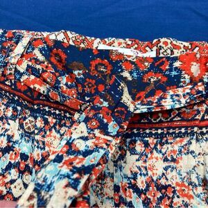One 5 One Abstract Print Shorts SZ M Blue Orange Summer Elastic Waist Tie Belt