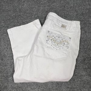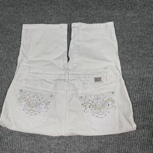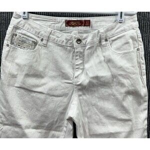 One 5 One Denim White Jeans Womens Size 12 Bejeweled Embroidered CottonBling