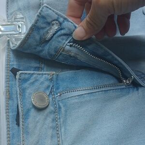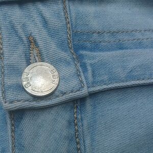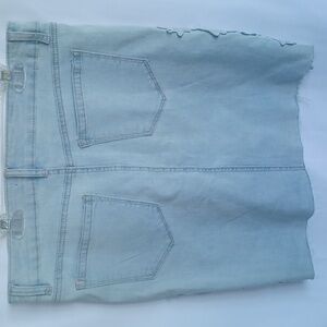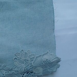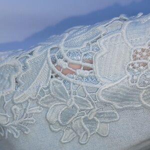 One 5 One Jean Skirt Light Wash, Lace Floral Applique, Size M, Raw Hem, 18" L