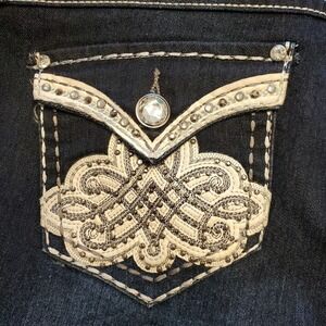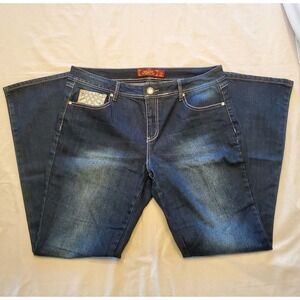 One 5 One Women's Size 14 Plus Jeans Embellished Pockets Dark Wash Flare Leg