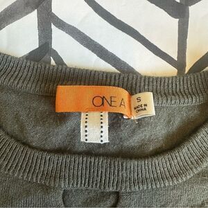 One A Size S Long Sleeve Dual Fabric Keyhole Front Green Sweater Tunic