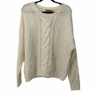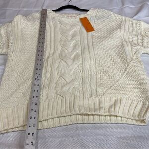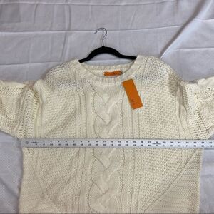 One A Winter White Chunky Sweater. Size large with measurements in the pictures. NWT. Has a pull in the back shown in the picture.