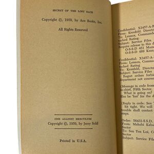 Please see pictures for the condition of the book - all angles of the book have been provided. It shows normal wear of a vintage paperback. Notably, there is a crease near the spine on the Secret of the Lost Race cover and a small tear at the top of its spine as well as a few creases on the cover of the One Against Herculum.