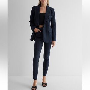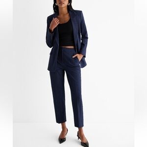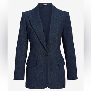 This lined Editor blazer is complete with peak lapels, a one button front closure, denim-like fabric and flap hand pockets.