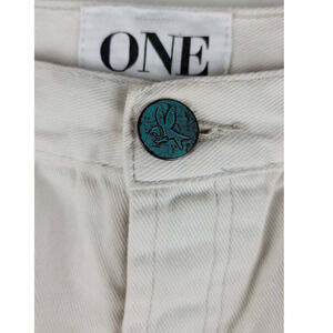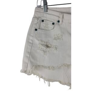 One By One Teaspoon Junk Yard White Turquoise Button Fly Frayed Hem Skirt 25 Button Fly, Low rise, button fly, extreme distressing, raw curved hem. Approximate Measurements Approximate Measurements (Flat) Waist 14.5 Length Front 10" Back 14" Bin 7145