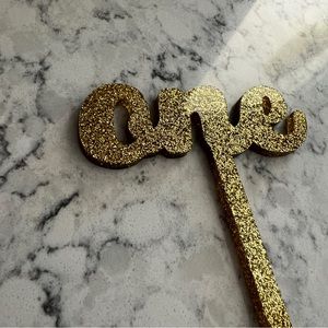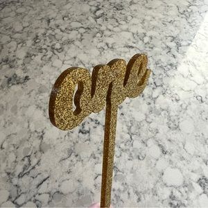 Great condition “one” gold glitter cake topper. So cute for a little girl or boy’s birthday!