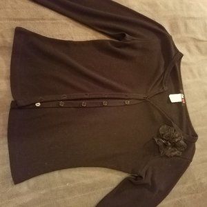 Black 3/4 Sleeves Buttons up the front Has a pretty flower (it's a semi-sheer fabric) So cute.. Like New I would say it's a XXS TO XS