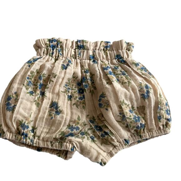 One Child Girls Beige Floral Pleated Ruffle Trim Summer Matching Set Size 24 M