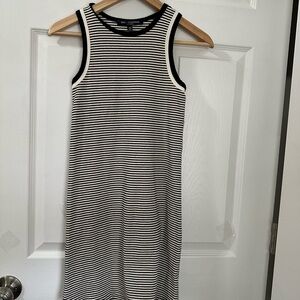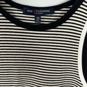 Elevate your casual night out with this sleek sheath dress from One Clothing. Featuring a chic black and white stripe pattern, this sleeveless midi dress boasts a flattering halter neckline. Its form-fitting design ensures a stylish and comfortable fit for any evening occasion.