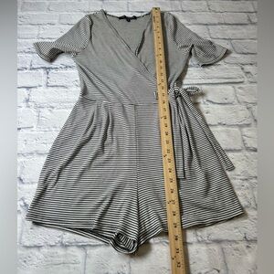 One Clothing Black and White Striped Wrap Shorts Romper. Size Small.