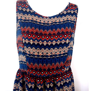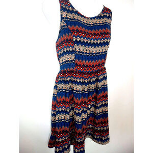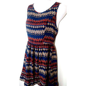 You are looking at a beautiful One Clothing brand boho geometric print sun dress in a size small. This dress has a back zipper, is fit and flare style at the waist and is just above knee length.