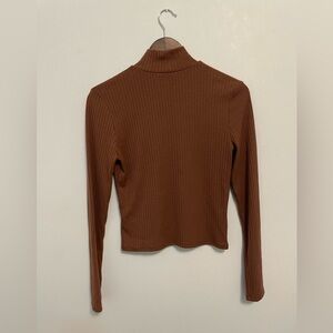 One Clothing Brown Ribbed High Neck Long Sleeve Top MEDIUM