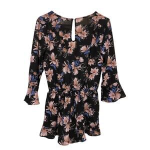 One Clothing Floral Romper Small Black Purple Ruffle Hem Long Sleeve Indie Boho