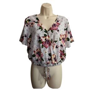 One Clothing Gray Floral Drawstring Waist Blouse Size L