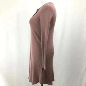 This ribbed dress features long sleeves, V neck with tie string and is good condition