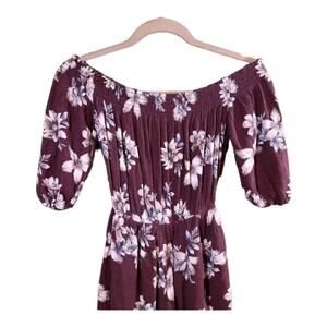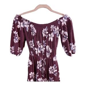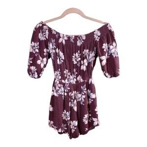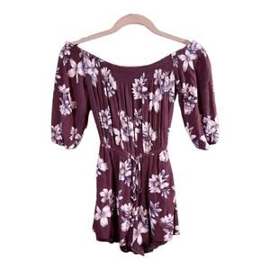 One Clothing Purple Floral Off-shoulder 3/4 Sleeve Crepe Romper Women's XS
