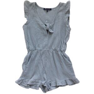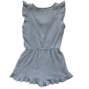 This super cute textured romper is in excellent condition. Ruffle details at the armhole and shorts hem, elastic at waist, and a tie detail at the bust. Color is best shown in the stock photo. Approximate measurements lying flat: pit to pit 18”, waist: 13.5“ before stretch, inseam 1.5”. Let me know if you have any questions! Feel free to contact me during a closet clear out event (Fridays and Sundays) if you’re interested in a 10% discount and $4.99 shipping on this item, or bundle with other items for greater savings. Please note that I reuse shipping materials whenever possible ♻️