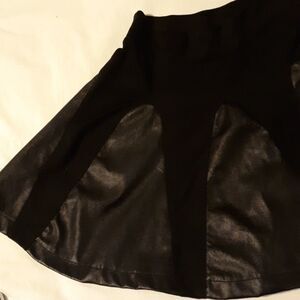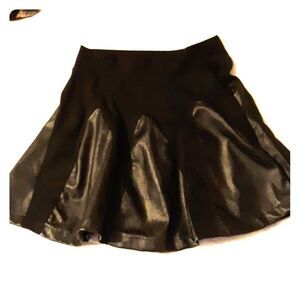 Heres a sweet skirt from One Clothing. It's a mix of pleather and material. It's super cute and can go from day to night with a change of top and shoes. It measures unstretched waist 24", length 15". In great preowned condition. Thanks for looking!