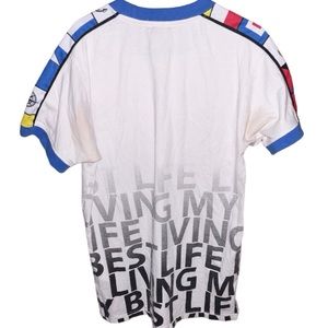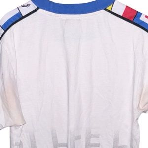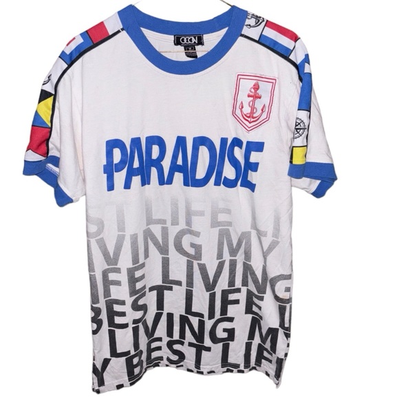 EUC One Color One Nation Paradise Ringer Tee. Size Medium. White With Blue Trim. Crew neck. Short Sleeves. 60% Cotton 40% Polyester. No Rips Or Stains.