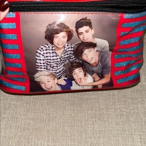 Exciting 1D One Direction bundle. Includes a Cosmetic case, wallet and a ID badge, a plush, a runner bracelet and stick on nails (6 items total)