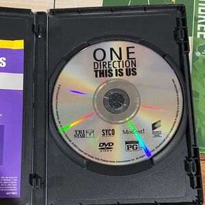 Set of three One Direction DVDs featuring concerts and documentaries. All very well loved and used. Wear and tear on cases and discs.