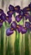 This captivating painting showcases vibrant purple irises set against a lush green backdrop. The impressionistic style, with its expressive brushstrokes, brings a sense of movement and life to the artwork, making it a perfect addition to any art collection.