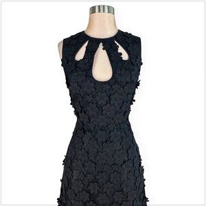 One Fifty Third Black Raised Applique Flower Teardrop Cutout Neck Dress NEW 2