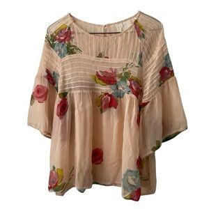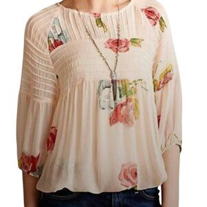 One Fine Day Anthropologie Rayon Tea Rose Semi Sheer Blouse I Size: XS