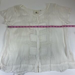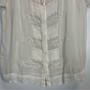 One Fine Day Blouse Womens Size Small White Sheer Embroidered Button Front