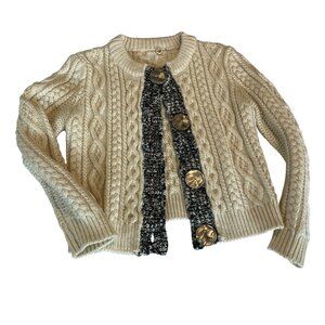 One Girl Who Cable Knit Cardigan Wool Sweater With Chunky Buttons & Ribbed