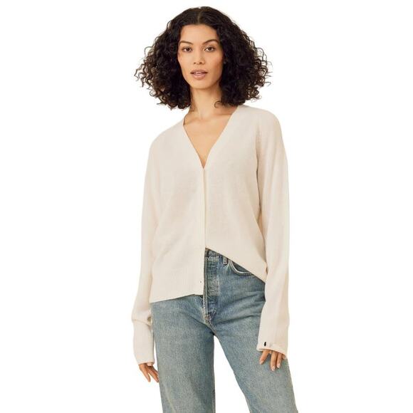 One Grey Day Addison Cashmere Cardigan Sweater in Ivory S