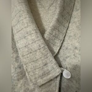 One Grey Day Heather Gray Long Cardigan with Shawl Collar and Geometric Pattern
