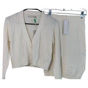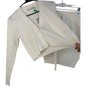 One Grey Day LA Crop Cardigan Skirt Set S Ivory NWT 7654 Knit Sweater Cable