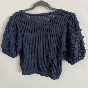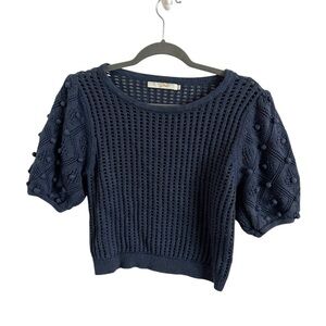 One Grey Day Los Angeles Blue Puff Open Knit Sleeve Sweater, size small